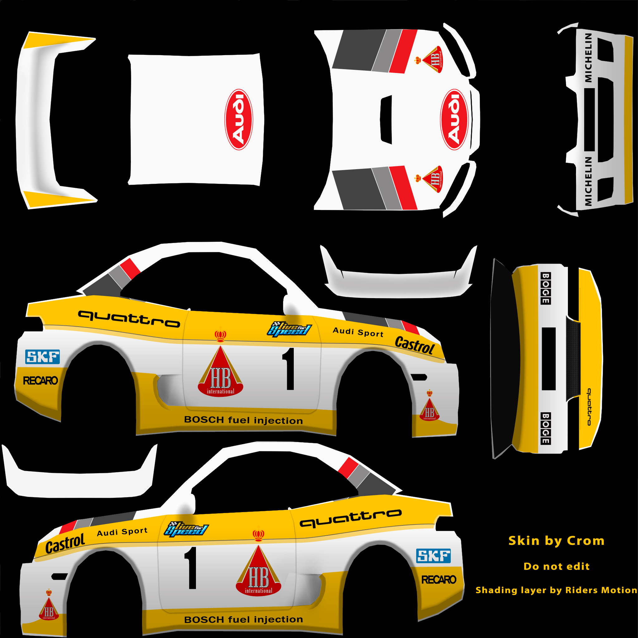Suprisingly difficult to make skin when cars are completely different shape, might have been easier to make XRR or FXR version since they're both kinda boxy
