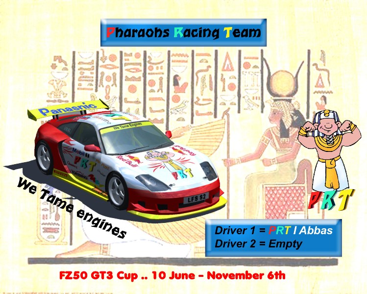 Pharaohs Racing Team recruiting drivers to its new participation in FZ50 GT3 Cup which will start 10th of June & car in use will be FZR with some special confederations.
