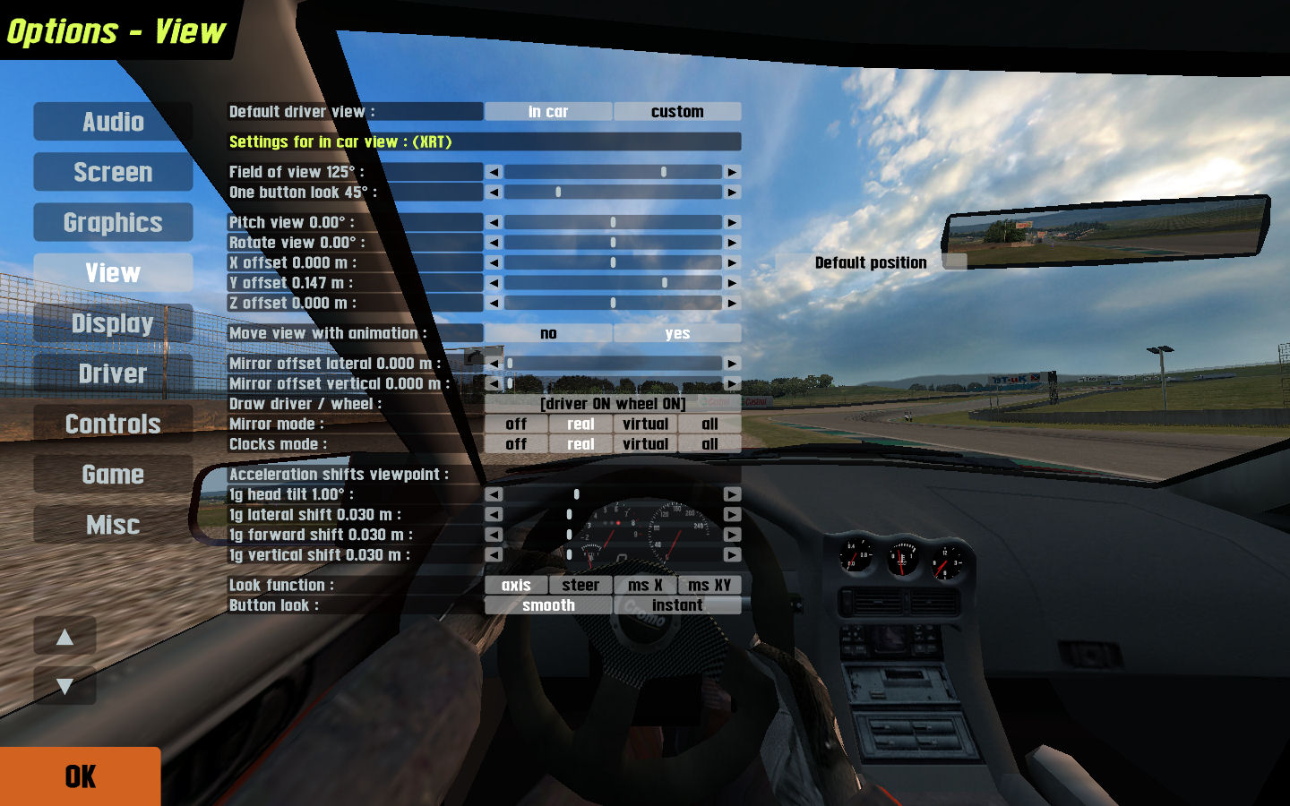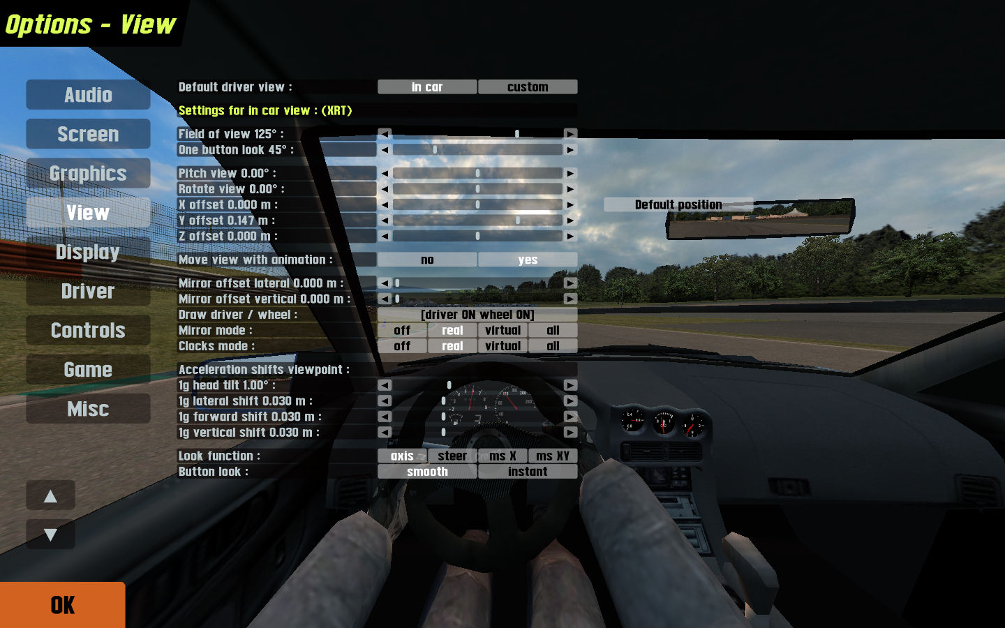 It also seems the view from your car has it's seat positioned forward (Z axis).