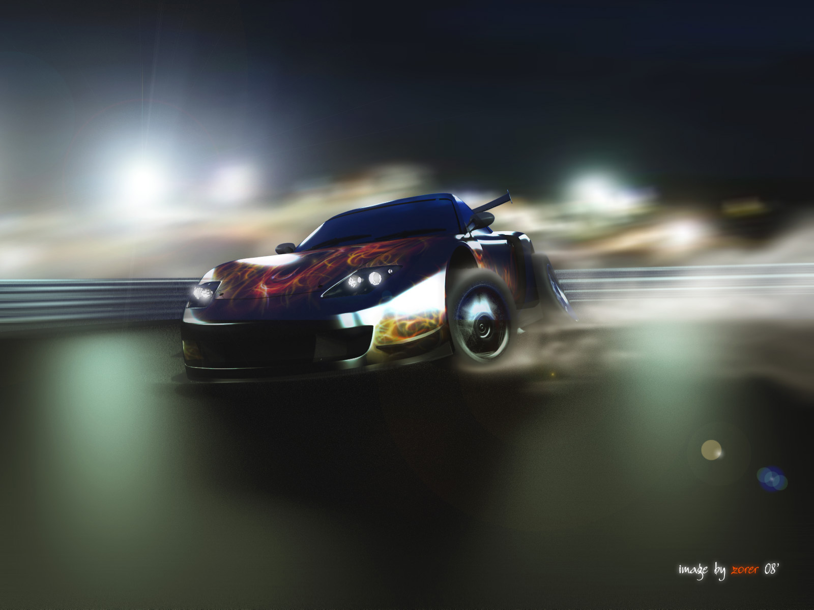 Hand painted flames texture and rendered under low light and high glossy materials layer by layer...Finally a touch of image filters and here it is;