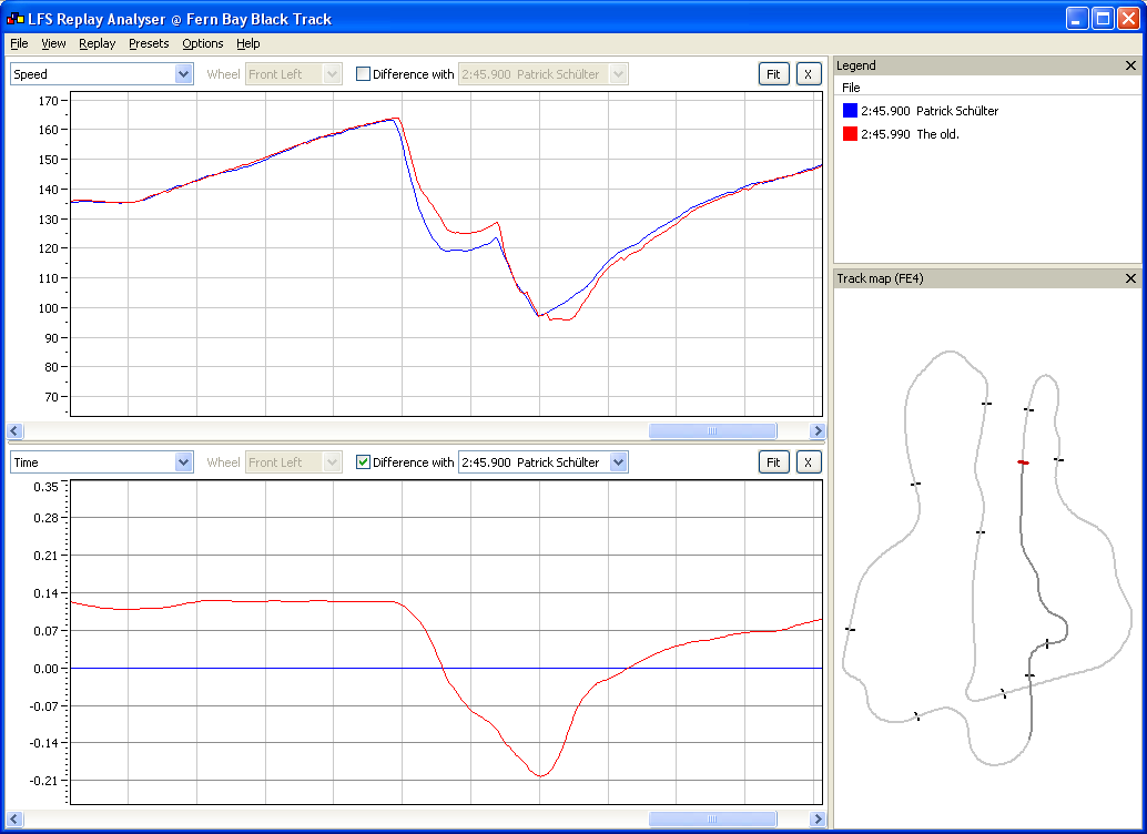 Juls, I can't agree with you. You can't tell how much time exactly you are losing just by speed graph. And that may be important, if you are hotlaping for MHR for example. Also, time diff. does depend on racer's lines, not speed only.. And they may differ a lot. Thirdly, sometimes lines on speed graph are very close to each other, so you can't even tell who's actually faster. In this case it'll be just too complicated to look at it and immediately see your weak points. And finally, sometimes you don't need too know exact WR speeds, since it's far from perfect, but you still need to know, where you're losing even compared to that.