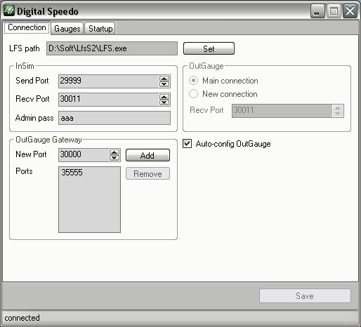 It connects with LFS through InSim, and uses d3d8 proxy dll to display data