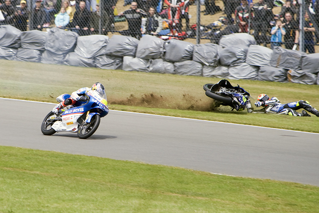 Shame that they need fences to keep the fans off the track. they didnt work too well as fans were track side as stoner passed under the bridge in front of starkeys on the last lap,very dissapointed and suprised that there has been no mention about that,they could jeopardise the future of the British GP if it happens again.