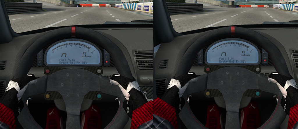Example, when you turn your head in the xrr, the camera clips the seat, and you realise that the texture is quite awful. Another thing; the hazards. On the race car it's fine, because race cars don't always have them, let alone need them, but in the road cars, the orange dot flashing when you turn any signal lights on is just ridiculous.