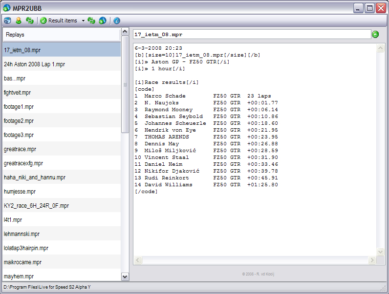 So if you're a league administrator, you can post race results fast and easy. If you're a team owner who likes to know what's going on in all the leagues your members are competing, you can distribute this small application to every one of them and tell them to post the results after a race. And finally the program can be used when you just like to see the results of a certain multiplayer replay fast and easy.