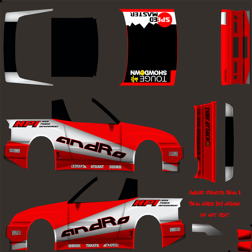 1. On the side of the car there should be our team name "4 Stroke Racing Team" (<---It should be written the same way as here and colored in black color, but you can use some font similar to the one in the preview skin.) The name should be big enough to see it.