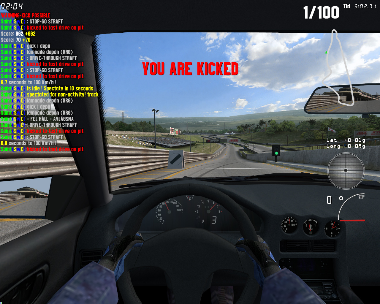 Drive in pit 80+km/h = not kicked