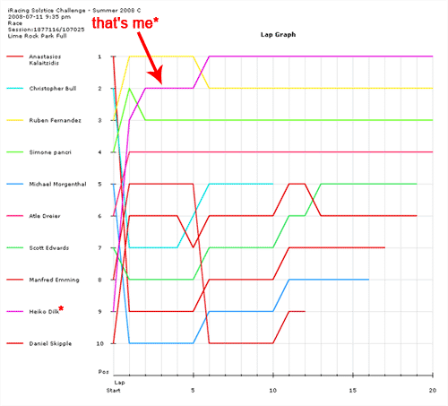 Oh, you know, cars spinning left and right. Luckily I was able to drive cleanly through all that and pass a couple of guys, which were actually not spinning, along the way. But as you can see, it didn't stop there. I was out of the thick of it by then, though, and claimed an easy victory. Zero incidents, too.