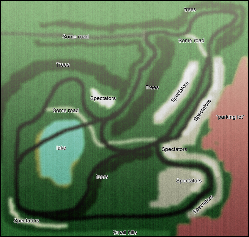 Oh, forget to attach pit text. It's in middle of those two spectator places on that straight