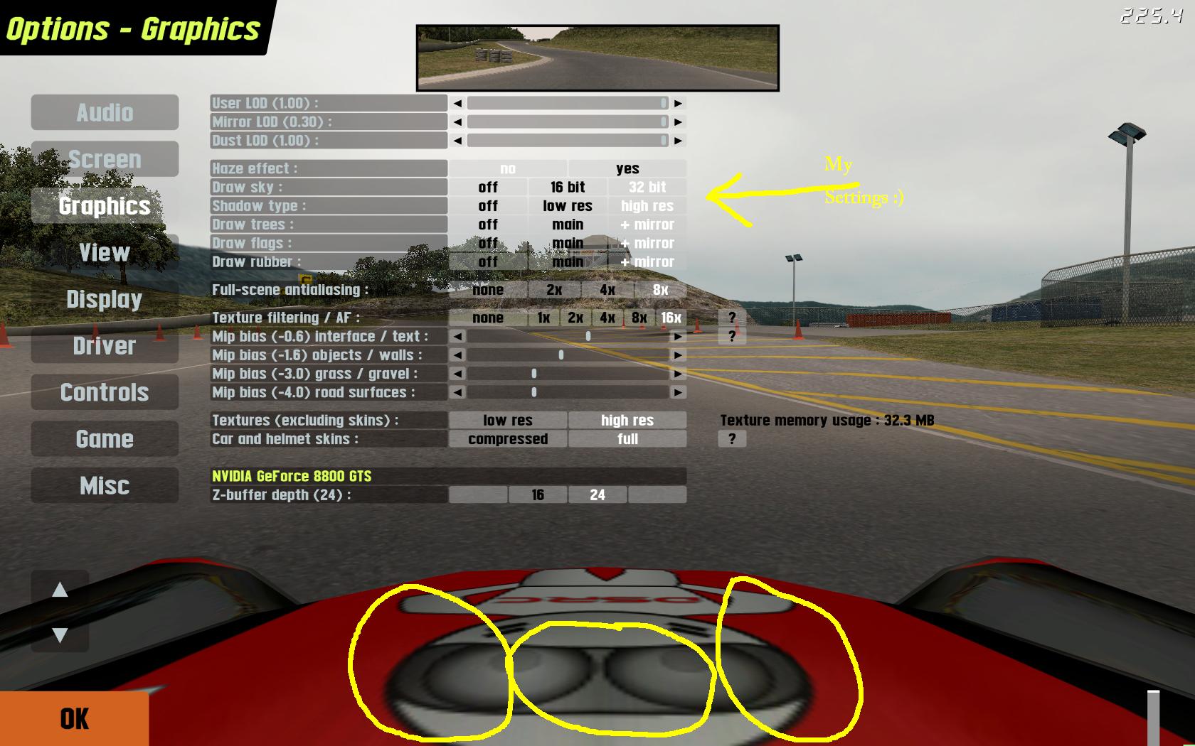 Got another weird jaggy problem...as you can see from the screenie, it seems that JUST the logo on the bonnet is jaggy... on the skin file it is nice and sharp, and I cant make it any better by playing with the settings..I can make it a LOT worse, but how can I get it to show nice and sharp like its SUPPOSED to be??