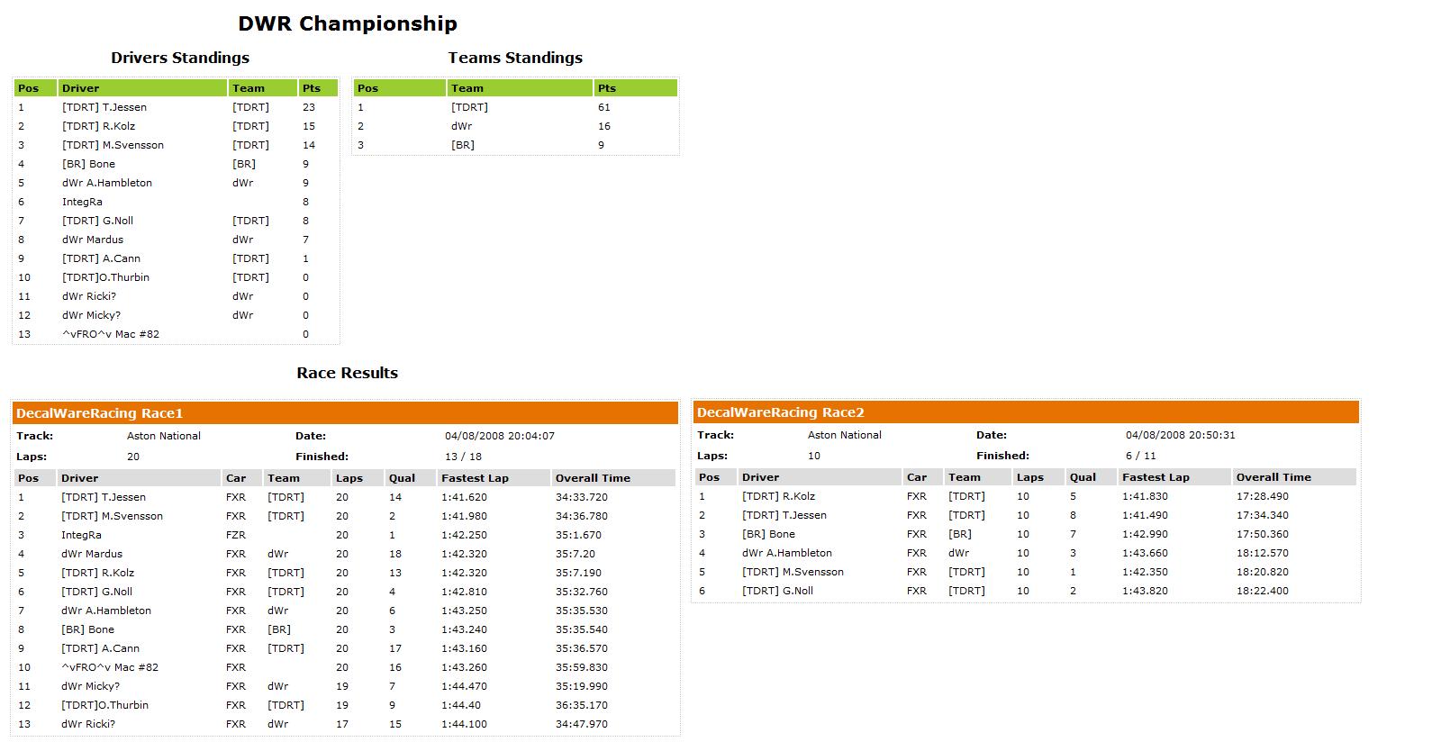 and no serius crashes in none of the races so tnx for the fun and we hope it comes more gtr Races from DWR