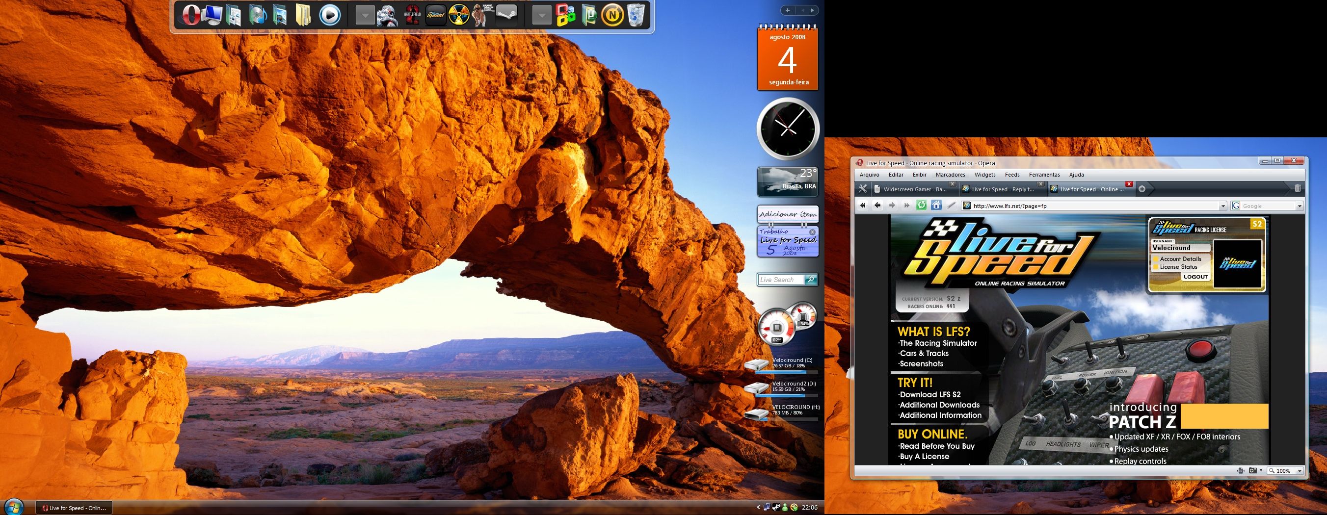 (DualView monitor... 22" LG LCD on the left, and 15" Proview CRT on the right... as there's nothing to show on the right monitor (besides the same wallpaper), I decided to put the browser window there )