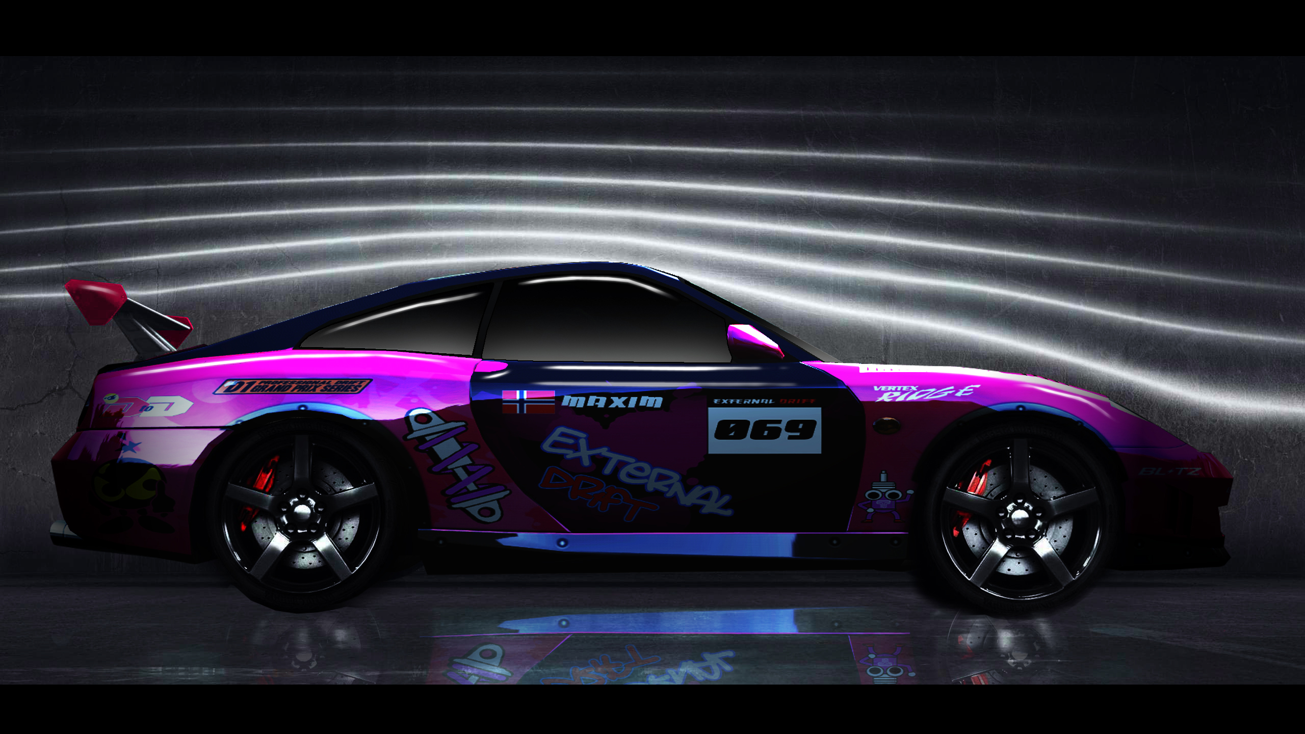 Feedback please? I could of added some motion blur to the tires but the camera man is good kthxbai I added contrast, changed lighting, put some blur to add focus, put the black stripes at the top and botom and put the text. That simple. :P I wanted to do like JJ did by putting color stripes showing the air flow of the car but I'm not good enough for that yet. :S