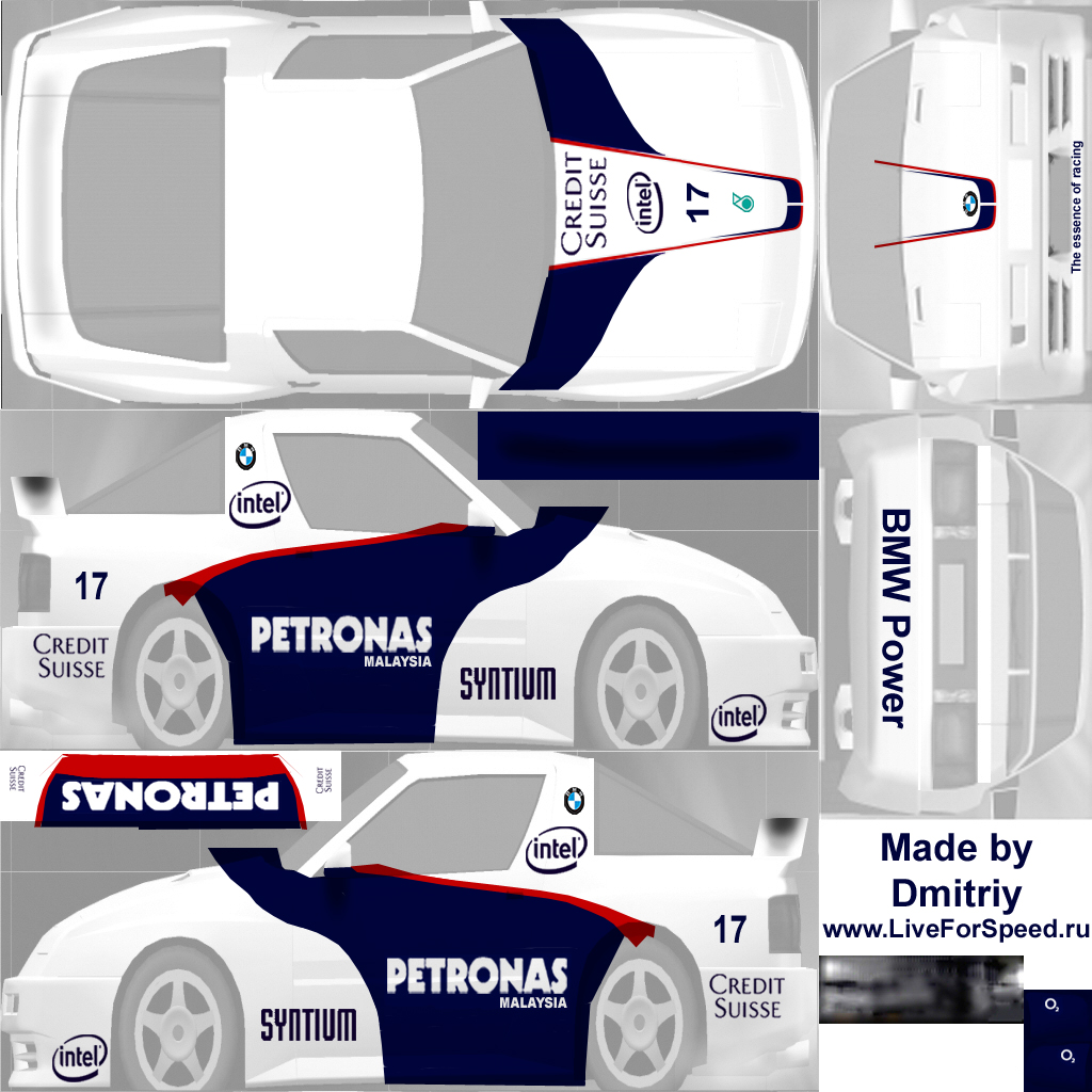 If you just used a darker blue, that skin would look spot on (it is actually a really dark blue with a hint of purple). I have seen that car at the California Speedway, and it is much darker blue. Lots of photos show darker blue too. If you change that, I think the skin will look great. I love that car too btw, I was thinking of skinning it, but I figured someone would do it first