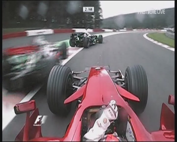 Todays incident, as well as the decision in the last race regarding Massa's pit exit only deepens this feeling. Make no mistake I am British and would like to see Hamilton win the drivers title, but today I was cheering for a revival drive from Kimi and a survival drive from Heidfeld (btw why did ITV cut the post race conference before we heard from Heidfeld?, bring on the bbc!).