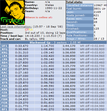 Also feel free to check my racer stats page on LFS world.