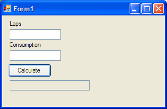 Hi, I started do learn VB and I want to make a program that counts the amount of fuel by multiplying no. of laps and fuel consumption per 1 lap.