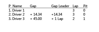 But LFSRelax can show the Gap/Times from the driver before and behind. So there must be a way at least to calculate each gaps if they are not provided directly by lfs.