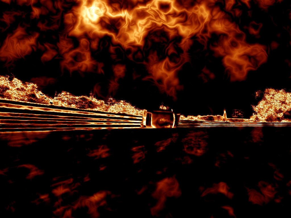 Nice job Joe! My guess is that you took the flames from a pic of something much bigger on fire? As the scale of the black plumes seems a liiiittle bit off to me...?