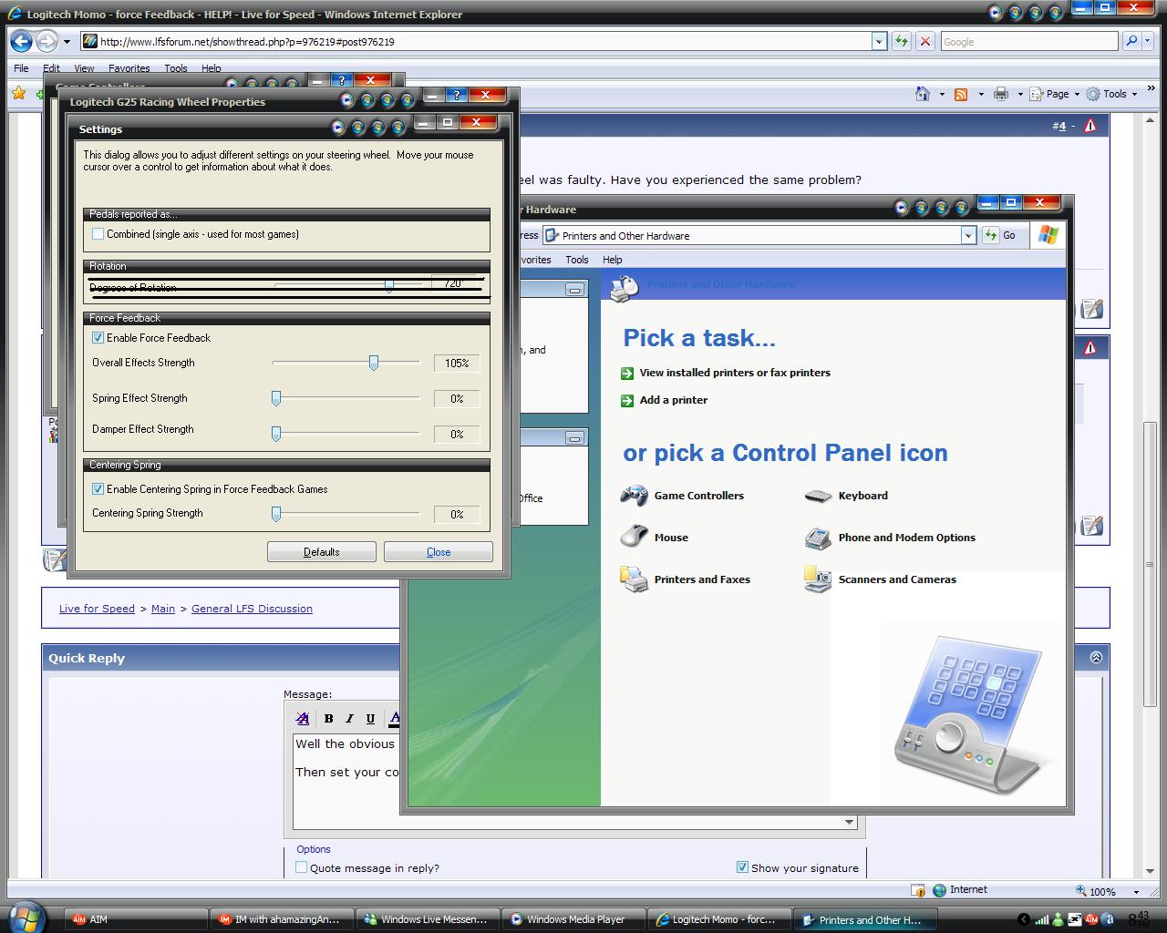 My problem is that the force feedback doesn't work properly. The wheel is VERY tight to turn and the only thing it does is returns to centre on its own. no actual force feedback works on the wheel. Does anyone have any experience with this?
