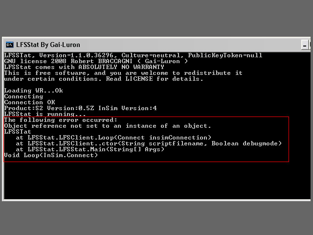 Quote from Bonetti :thanx JackCY!I just started the lfsstats & lfs in the wrong Order.Thanx for your Help!
