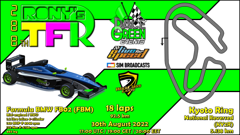 Second race of the second season brought us the entry level formula car Formula BMW FB02 as it's known also in the real racing world - relativelly simple car and yet has it's own challenges to be fast on track. Unfortunatelly lack of proper ruling overshadowed the competition as some drivers used something that's quite unrealistic for open wheel cars - bumpdrafting,which in real world is not so easily possible with such cars. But the race goes on and it provided some action in the stream as always - feel free to rewatch it even if the intrigue is gone knowing the results.