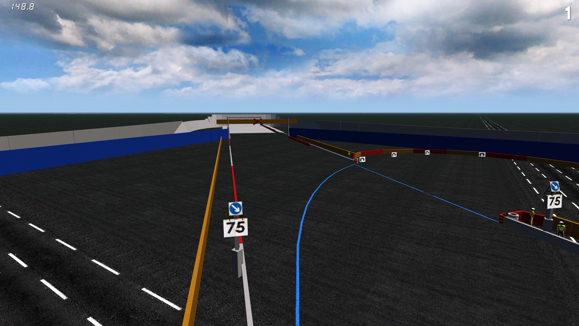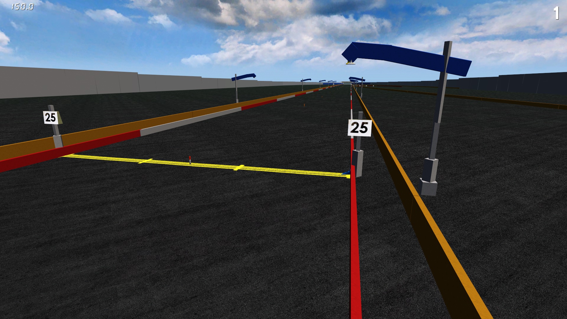 A two-lane drag race track, full length is 1305 meters, can be driven in one direction only.