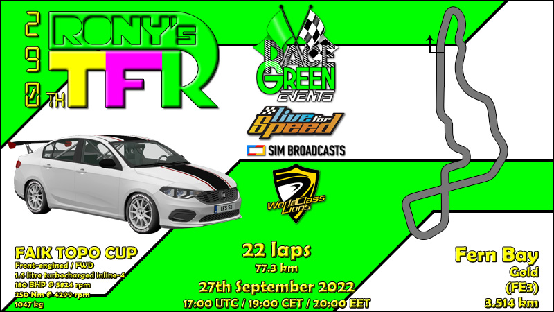 Next week it's time for RTFR XL - it will also be carried out in Fern Bay,but this time the longest standard configuration will be used. The 6.5km Black configuration will await racers to be tackled with LX4 and will be circled 27 times. That's the planned RGE action for tuesday,but one day before that V8 Racing League will hold it's 2nd round running the new challenging car - don't miss out the action in both events!