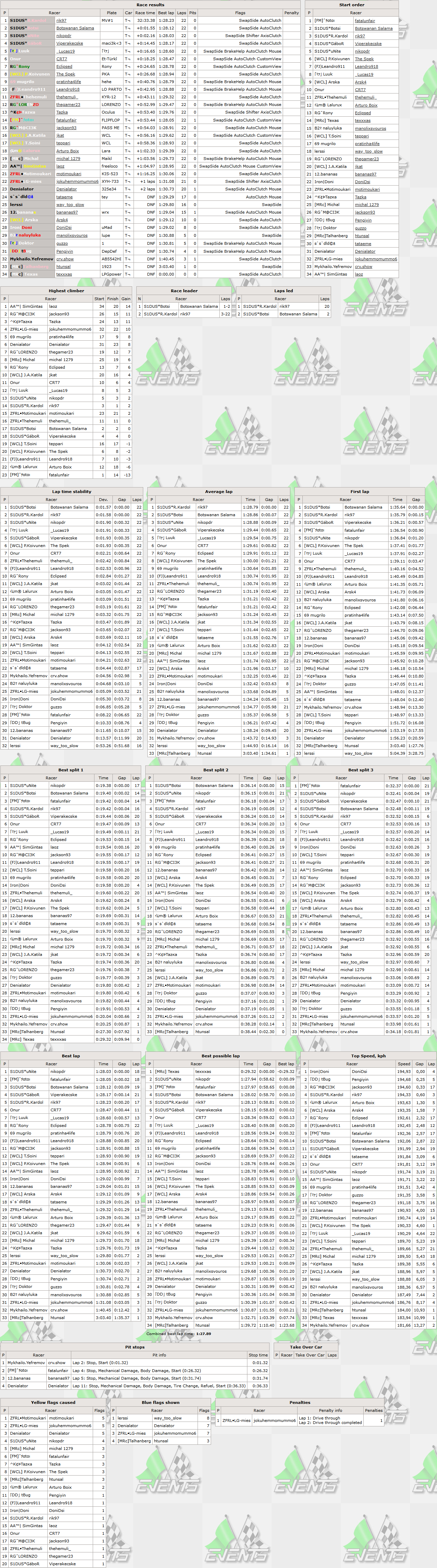 lerssi - is DISQUALIFIED from race results for leaving the car unattended on grid and also foul language. Future misconducts will lead to race ban as the driver has shown very unmature attitude towards the event and fellow competitors in the past.