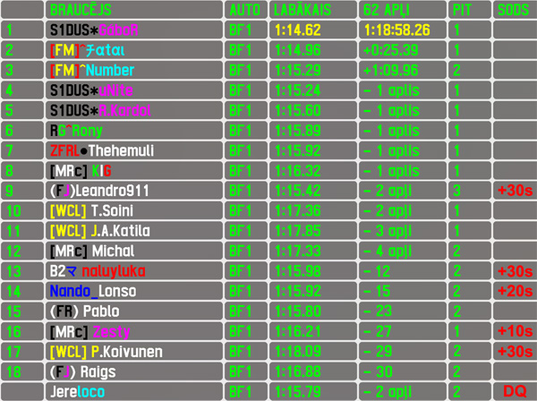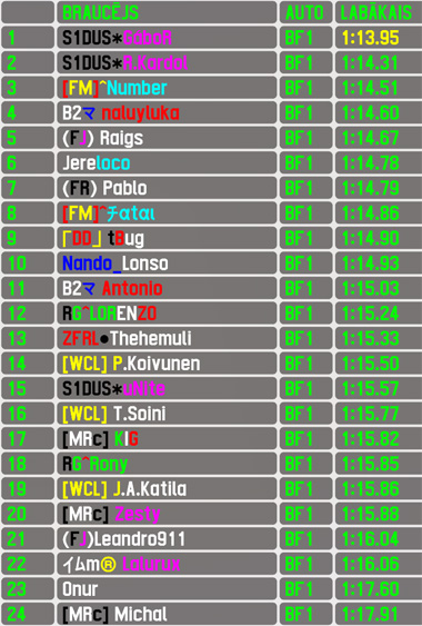 Last BF1 race won by: S1DUS*GáboR (46th RTFR XL - KY GP Long w Boothy Chicane)