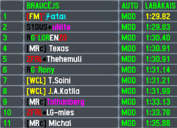 In the teams championship the leading 4 teams managed to get even closer together as both leaders scored 18 points,while both chasers - 3 more. Now there are just 5 points between 1st and 4th - Fragmaster still leads by 2 over RGA,followed by S1dus in 3rd with 4 points gap and Zafiralis in 4th with 5 points gap. Again such situation is way too close to calculate possible scenarios as there are way too many possibilities,the only constant value is Fragmaster's advantage in any tiebreak situation due the 3 wins. Since not a single new latvian driver signed up,Finland clinched the nations cup right with the start of round signups lock out (10 minutes before round start) - not that a new signup would matter as finns scored maximum possible 39 points for the 2nd time in season and has now 3 times more points than 2nd placed nation Latvia. Italy is 3rd with 6 points gap to 2nd position.