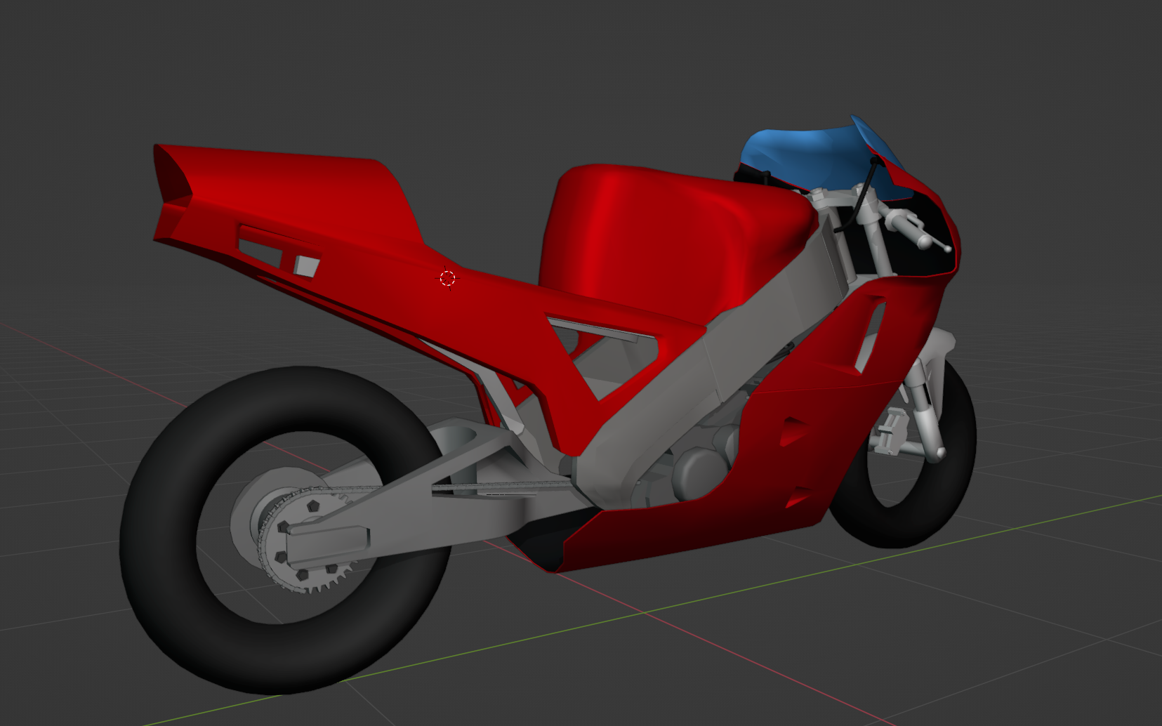 Hello, I am currently developing a motorbike inspired by the honda nsr500 but with my own twists and some of my own design. I previously had started a motorcycle a few months ago but was unhappy with the quality of my modeling. So I decided to take a course on udemy.com and this is what I've been able to manage so far.