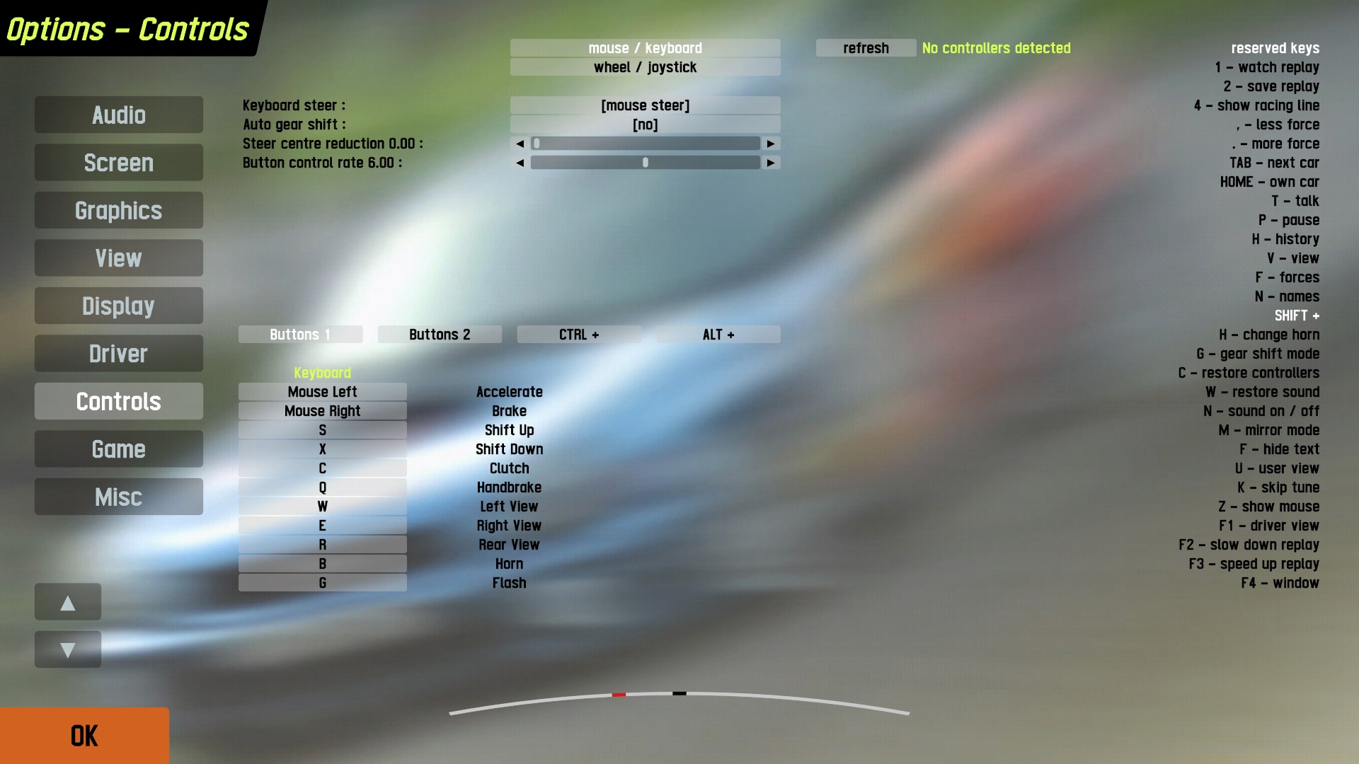 You can also tweak the "Steer centre reduction" value and "Button control rate" to your taste. These settings are explained on the Options manual page.