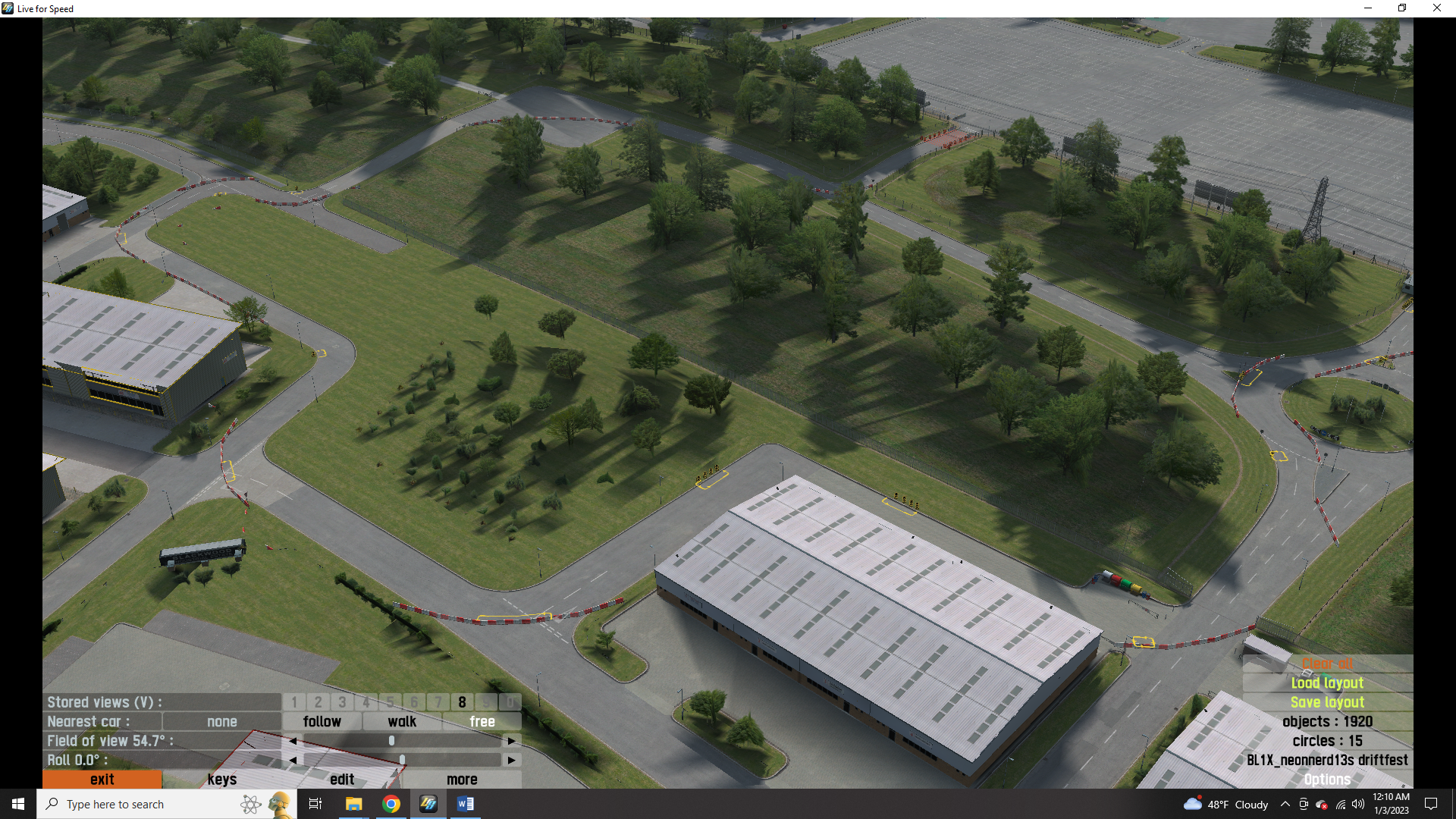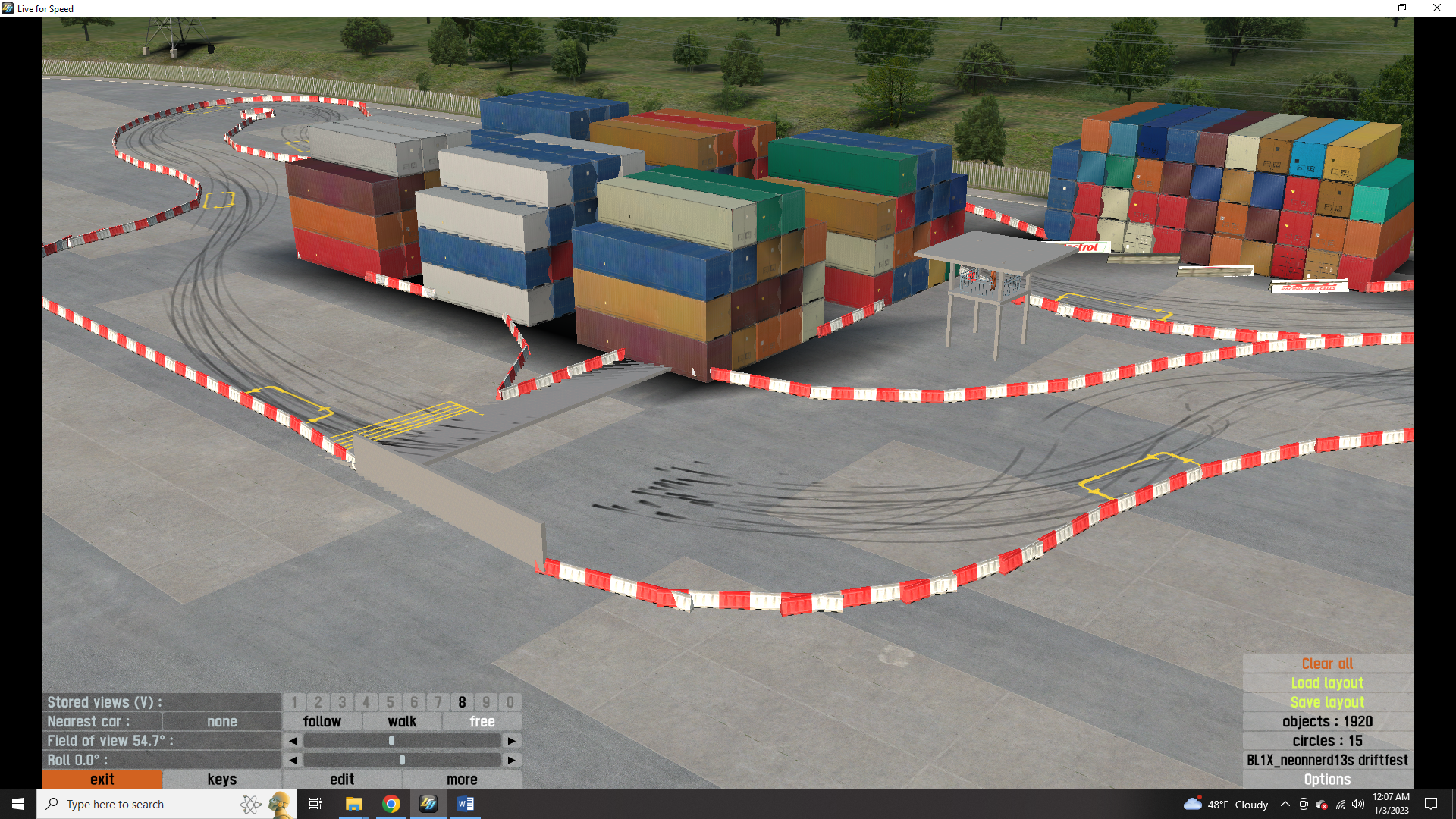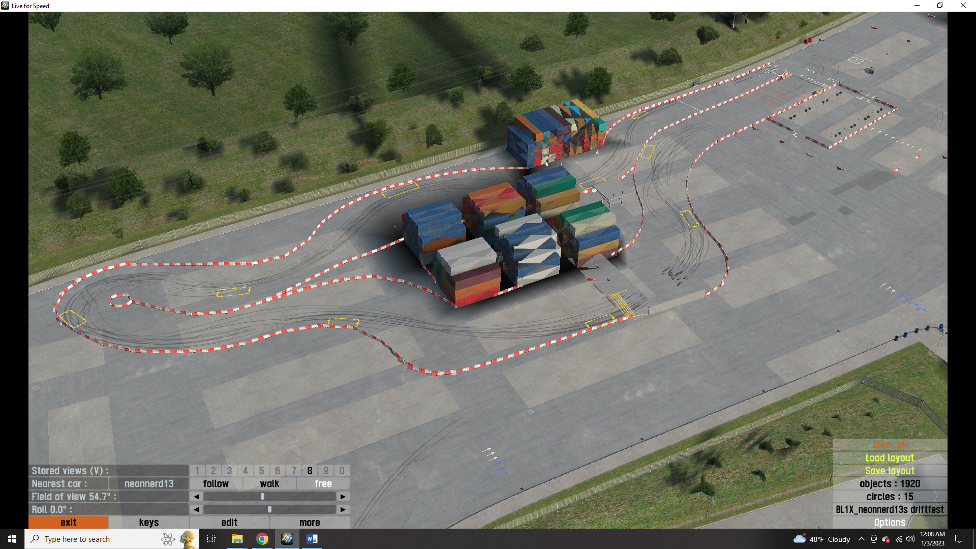 this is my drift layout. neonnerd13s drift fest. there are 5 tracks as well as donut garage and the burnyard from the hoonigan youtube channel. all the tracks are color coded with colored arrows directing you to each one. red track(fd style) is on the front straight. yellow track(touge style) is in the parking lot. white tracks(2 tandem) are in the container yard. white A is tighter and slower. white B is fast and features a jump drift. blue track(track day style) is in industrial. to reach it go through container yard. both hoonigan locations are also in the container yard. all tracks have pit boxes to save you from a drive when you need tires. i plan to add more in the future but for now i hope you enjoy.