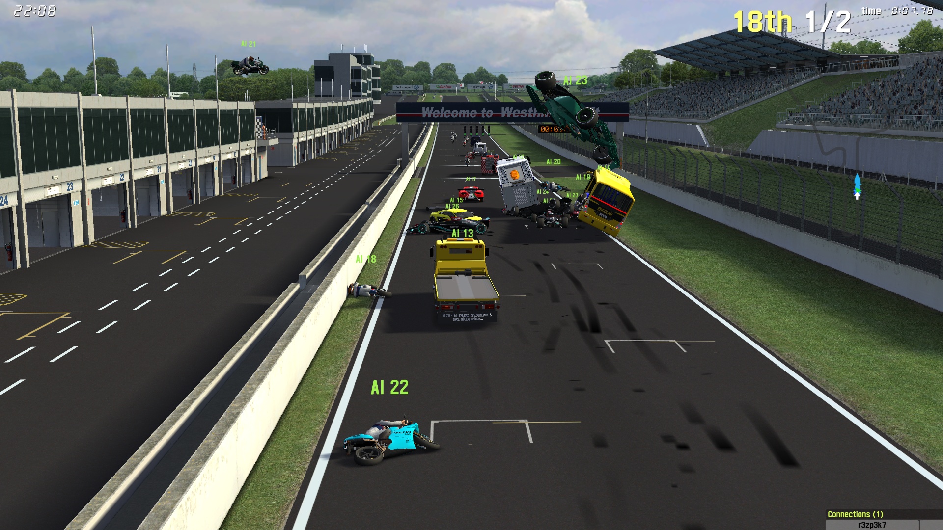 Also, I just tried having a race with 8 FXR, 8 XRR and 8 FZR on KY2, and maybe it's because of the latest changes, but there was a big crash exiting T1, probably because they were a bit too eager to overtake each other. I'll test some more tomorrow.