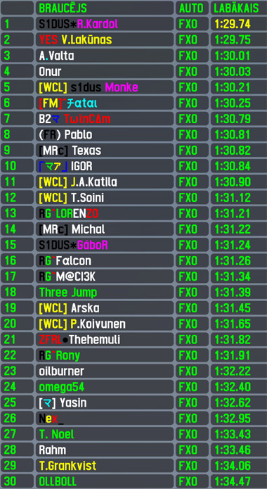 FXO was the 1st car that featured 30 or more drivers in a round - in the 2nd RTFR XL there were 32 drivers in qualifying,30 on the grid. These values were not beaten until the february of 2021,where the chance being shown on livestream atracted 1st maximum grid. Same was with races featuring the FXO itself - the next 2 races after the 1st record featured 15 drivers average until this tuesday where FXO returned to 30 atendees.
