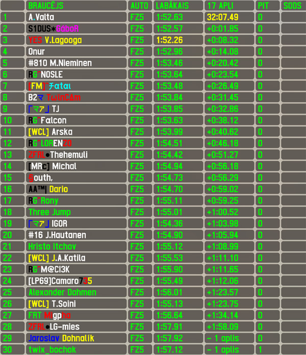 A reminder - server will be password protected 1 hour before qualifying start to keep not knowing crowded server jumpers out of way,pass will be always the same: green