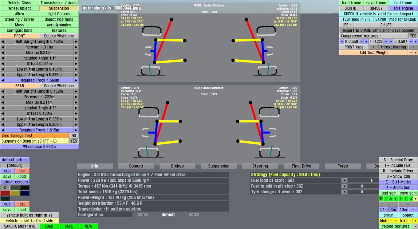 A suspensao traseira e muiltilink, fiz uma rapidinha aqui, tbm ajustei o motor para uma potencia semelhante o carro de verdade (nao o que a fabrica diz pra passar melzinho na boca dos governantes kk)
