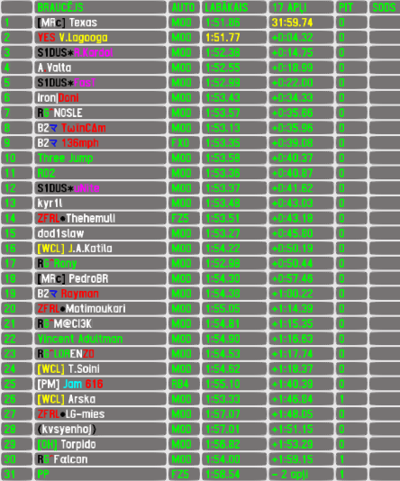 The winner hasn't replied yet so we currently don't know which track will be used in round 3,but that will change on the coming tuesday at latest. What's known is that we will have 1st "on the fly" balancing adjustment - the highly performing URC1 will receive extra 10kg ballast from next round onwards and will be kept under view to decide if another set will be required. Next tuesday the server will be used for event with server's name again - RTFR will return with some fast action,full info will be posted on the weekend. But in 2 weeks the pace will drop significantly as in RTFR XL we will race the slowest standard LFS car!