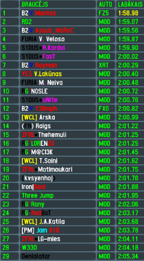When looking at the stats,we can see that few cars happened to be drawn more often than others - the AWD Imprezzive is currently drawn most with 17 draws,followed by Talot with 15 draws. 8 drivers already have been drawn same car twice,most prominent seems to be 136mph who got the FXO twice out of car's total of 7 draws. The 4th round set not only new race average speed record of 133km/h but also was the 1st race with 100% finishing percentage as all 29 drivers completed at least half of the race distance.