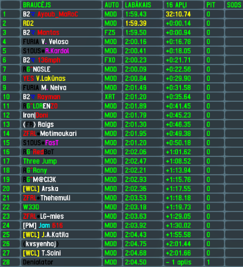 Series newbie Ayoub Maroc got the URC right at his 1st round and got used to the car quickly enough to upgrade his 3rd position in qualifying to 14 lead laps out of 16 and race win. However his win was everything else than easy as 2 cars were chasing him whole race long,the closest one was fellow URC racer with experience with this car - RD2 won series' 1st ever race with this car and tried to convert his 2nd draw of this car into 2nd win,but never really found a way past,so he clocked the closest finish in league's history by finishing 0.14 seconds behind race winner. The bulgarian set the fastest lap of the race,scoring his 2nd one of these as the 1st ever driver. Fastest in qualifying for the 3rd time in row was Mantas,scoring this achievement with 3rd different car,however during the race he could only follow the URC duo and finished less than a second behind winner in 3rd position.