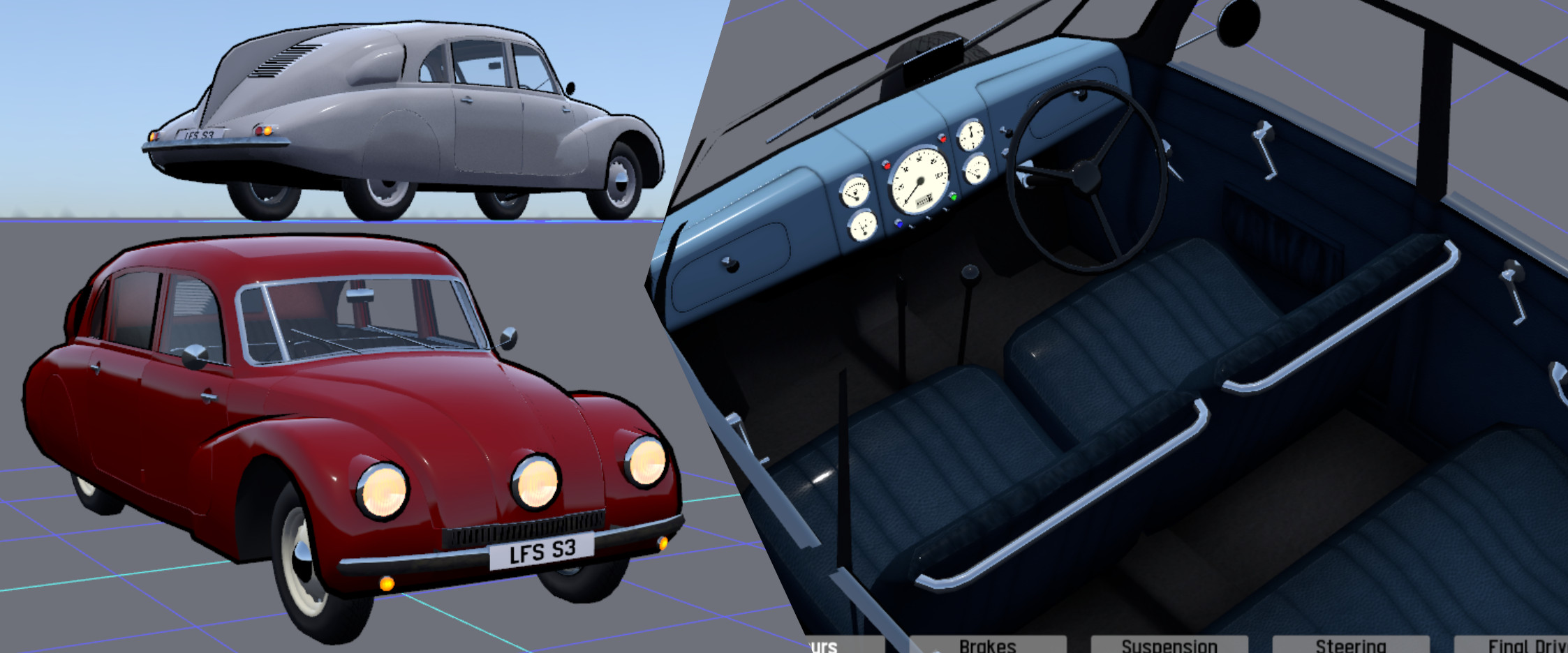 After the complete graphical rework of my oldest mods and a lot of online research to gather enough technical data, it is time to recreate another classic from my wishlist. I have started working on my personal tribute to a 1930s Czechoslovak engineering masterpiece. One of the most unique, advanced and fastest cars of its era.