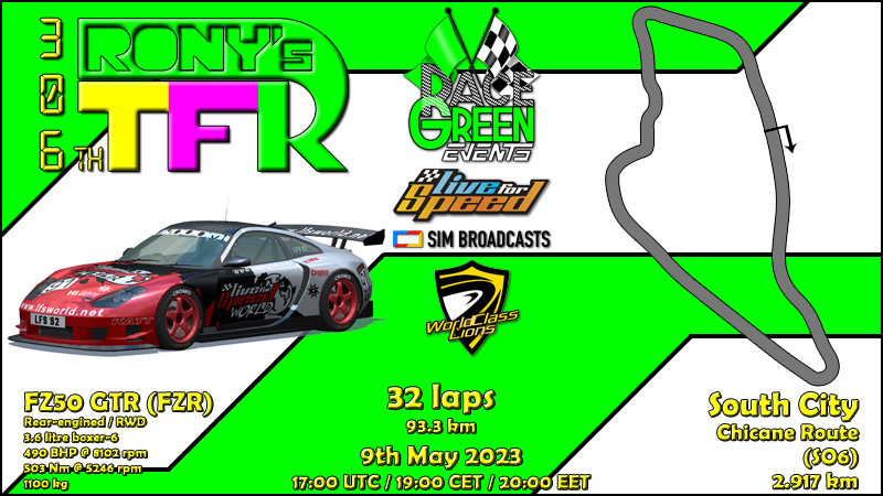 Next up is RTFR XL - on the coming tuesday a totally different LFS's GTR car will be used. It's the one classified as NGT class car with a lot of rolling potential - the beefed up UF1000. And to add some more roll in the rolling the selected track has few of the "sausages" lying around,so it will be another focus test race just like this week. Full information will be posted and server will be set up tomorrow. In 2 weeks the standard length RTFR will return - which car and where can be found out in the broadcast recording.