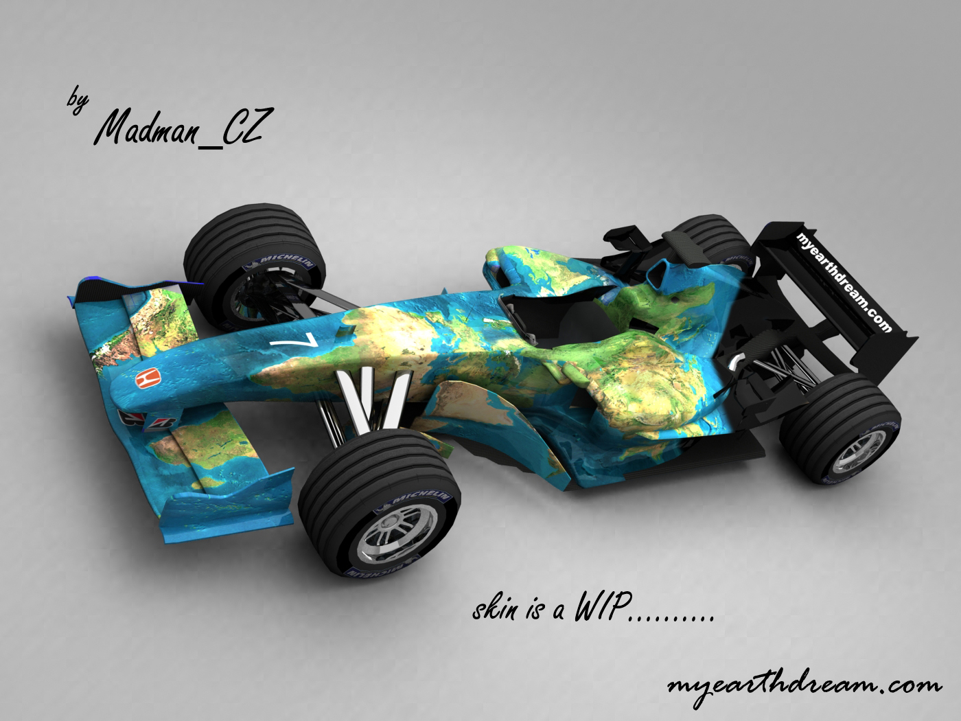 Quote from Madman_CZ :Here is a first quick test render that I have just done to see my latest skin creation. Yes.. its the Honda 07 earth skin. It is still a work in progress as you can see from the render, some of the countries do not line up on certain parts of the car so that needs fixing.