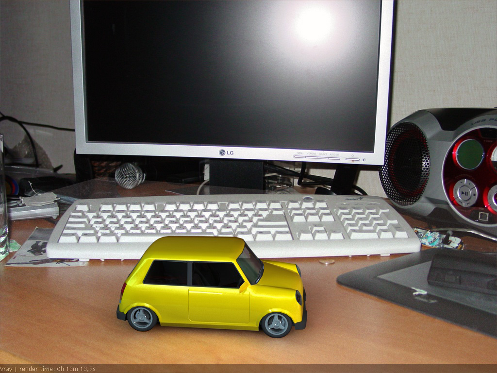 I've cleaned my desk... and i didn't put much time in the lighting.. didn't want to... And both pics have shadows cos I was experimenting with transparent planes which receive shadows