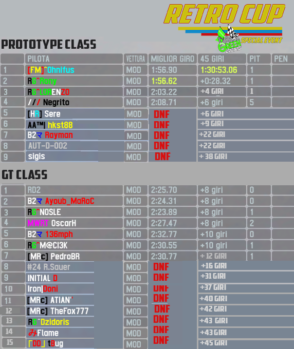 If the interest around it is good enough, there will be a Summer Retro Cup, featuring new, exciting layouts inspired to the classics of Endurance, more cars & longer races, with drivers swap!