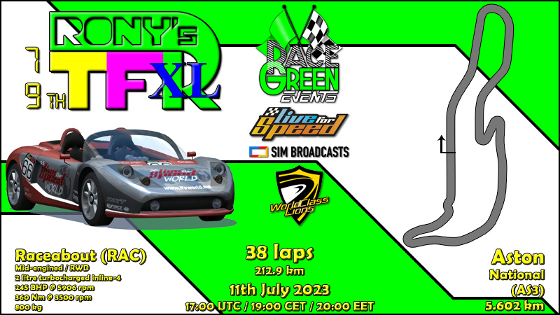 The winner still has not submitted his choice for next RTFR XL race,scheduled in 4 weeks,so there is not much information about next 4 tuesdays,but still we can provide some basics - next tusday it's time for normal RTFR,which will have it's 3rd and last off-season race,as per schedule it will be a road legal cars race,more info will be known only on coming weekend. The tuesday after next is RandomCar tuesday,again 2 parameters are known about this race - the track is South City City Long in reversed direction and the cars will be drawn out of pool of 25 PL200 class cars. The 3rd tuesday from now will be the start of 2023 season 2,running one of the slick tyre cars - with this the SimBroadcasts live promotion of the event will restart for the next 10 RTFR races counting towards 2023 S2 standings.