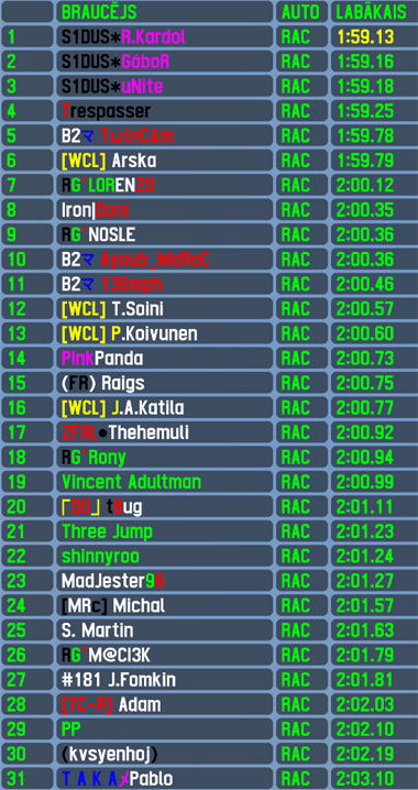 A reminder - server will be password protected 1 hour before qualifying start to keep not knowing crowded server jumpers out of way,pass will be always the same: green