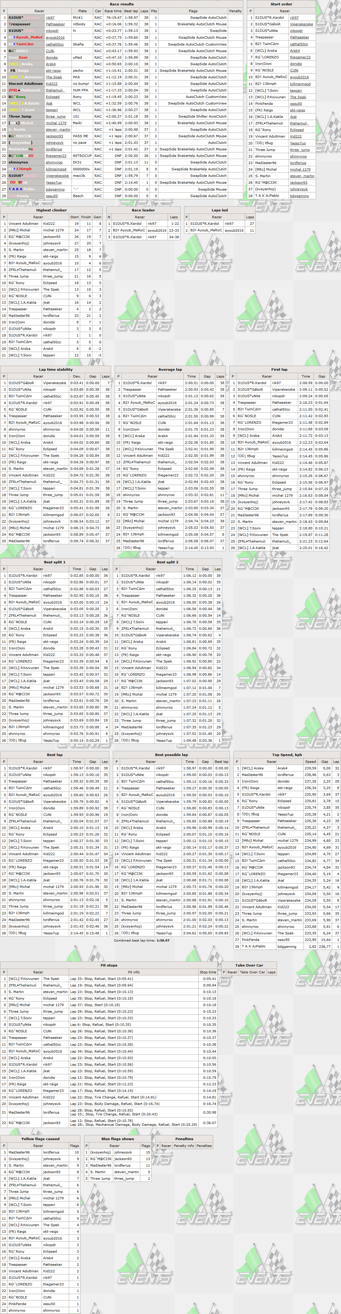ADDITIONAL NOTE: Even at this point this is aimed at certain individual,it also counts to everyone - if you have absolutelly no intention to finish the race,PLEASE DO NOT START IT! It is unfair to other drivers who practiced hard and are interested to achieve a good result if someone just joins,goes for agressive moves in first few laps,impacts race progress of others in negative way and then just leaves as they had their "fun" in field of cars without caring about main goal of a race - finishing it. If this behaviour will continue,organisation will be forced to deny entry of these individuals.