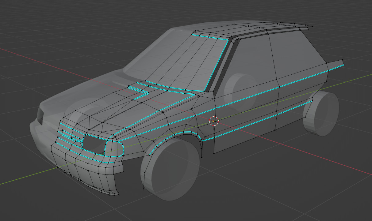 Progress: smoother door and mudguard shading. Added outer door-handles